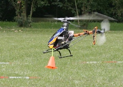 Die Last wird mit dem Modell aufgenommen, eine 720 Grad Pirouette geflogen und in